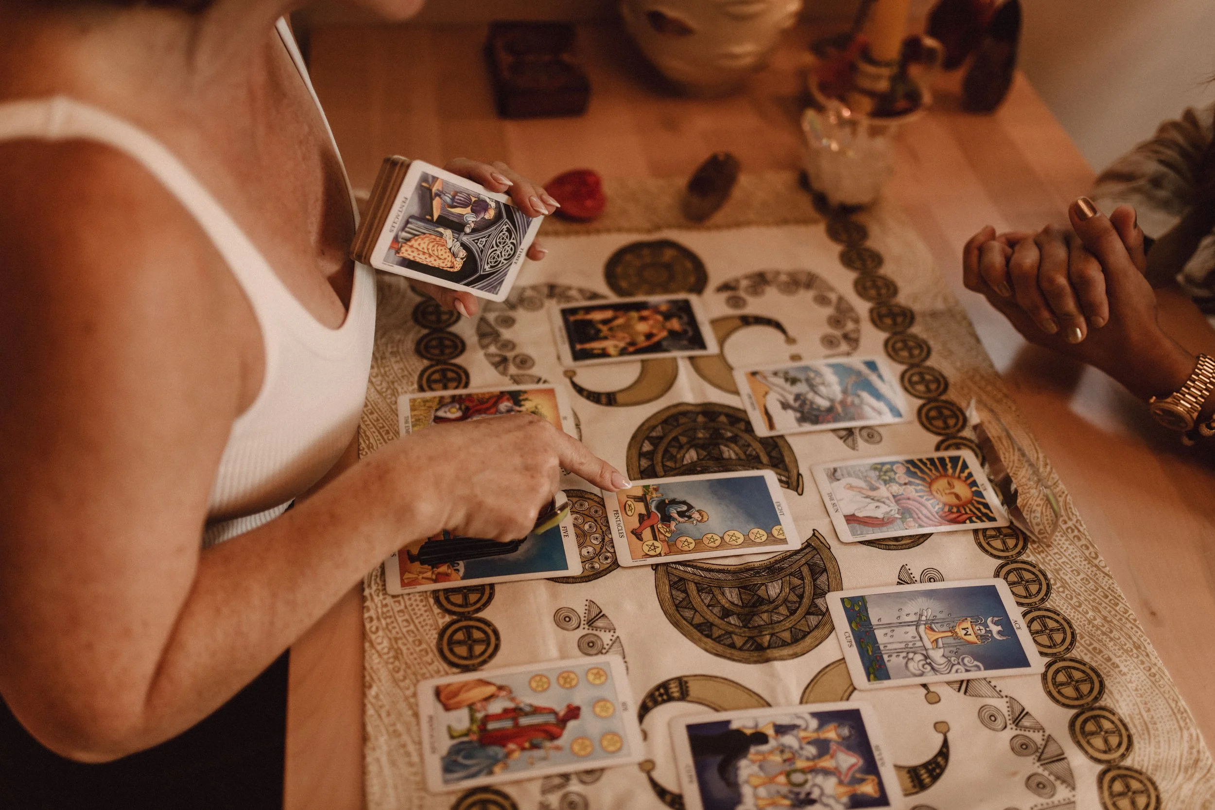 Tarot and ritual lived alongside everything I built — the way I stayed connected to my intuition through every reinvention, every threshold, every season I couldn’t logic my way through. I was reading cards, crafting little spells, lighting candles with intention… long before any of it was my profession.